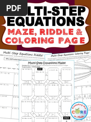 Some of the worksheets for this concept are solving multi step equations, multi step equations date period, equation vocabulary patterns functions and algebra 6, work 2 2 solving equations in one variable, solving equations patterns functions and algebra 8. Solving multi step equations matching assignment. Equations include distributing, variables on b. Using a digital color by number activity works best with ipads where coloring can be done using an app such as notability.students will solve multistep equations resulting in integer solutions. You can change that in your classroom by incorporating these fun math mazes, riddles and coloring activities.